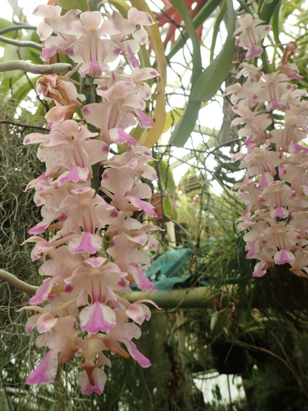 Aerides falcata is a gorgeous vandaceous species from SE Asia with long pendulous racemes of beautifully fragrant white and pink flowers. Advanced seedling of Aerides falcata for sale in 65mm pot $25