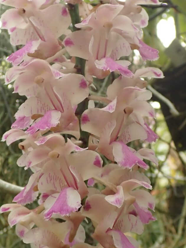 Beautifully fragrant white and pink flowers on long pendulous flowers spikes