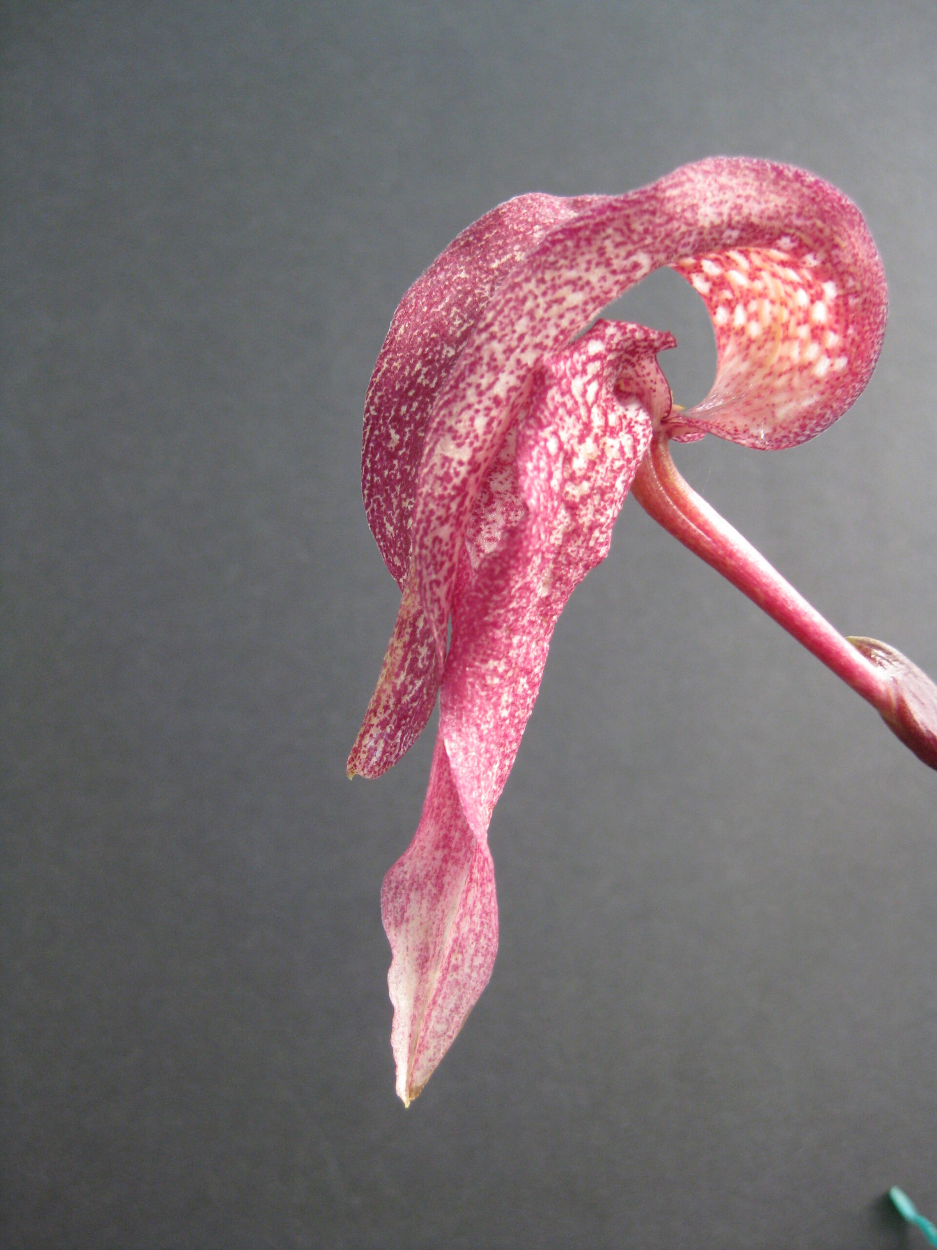 Bulbophyllum cominsii is a stunning species with large, prehistoric looking off-white flowers with lots of red marbling, native to PNG and the Solomons.