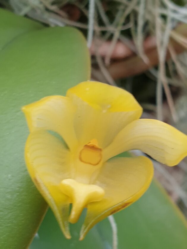 Bulbophyllum sinapsis, an unusual and uncommon Bulbo,, is a lovely yellow flowered sweetly fragrant species from New Guinea.