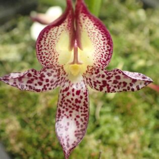 Bulbophyllum Vindobona is commonly seen as Bulbophyllum rothschildianum but latest research indicates that this is a primary hybrid between B. rothschildianum crossed with B. ornatissimum although this name is not yet accepted by Kew. The real rothschildianum is very rare and hard to find. Regardless of the name this is one of our all time favourite orchids worthy of a place in any orchid collection..