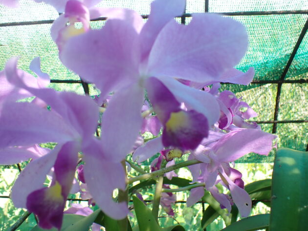 Cattleya bowringiana var. lilacina, a magnificent species from Central America, carries beautiful clusters of large lilac flowers with a darker contrasting lip and yellow throat.