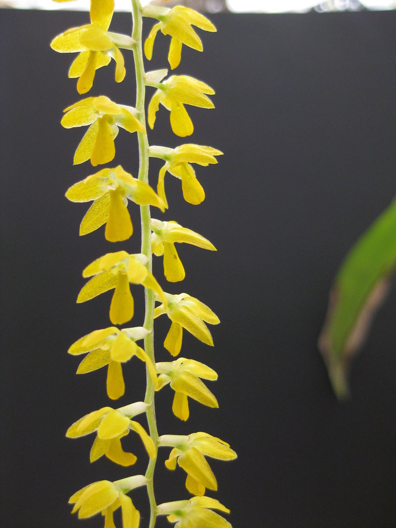 This yellow colour form of Dendrochilum cobbianum is a very easy to grow and flower species from the Philippines with upright flower spikes carrying long pendulous sprays of graceful yellow flowers. Flowering size plants of Dendrochilum cobbianum yellow for sale $30 each