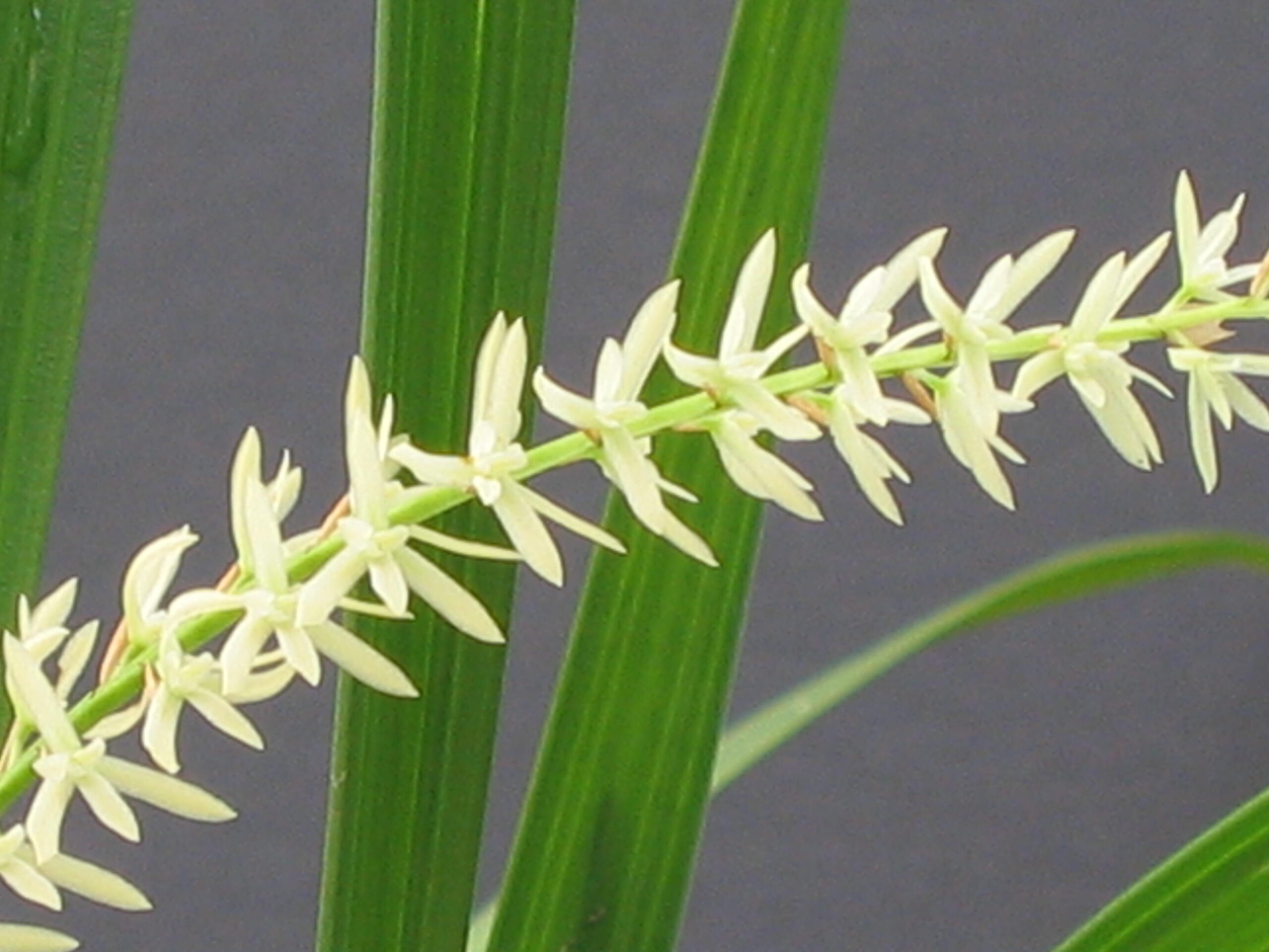 Dendrochilum yuccaefolium is an easy to grow orchid from the Philippines with graceful semi-arching flower spikes carrying lots of starry creamy-white flowers. Flowering size plants of Dendrochilum yuccaefolium for sale in 100mm pots $20