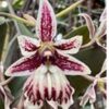 Commonly called the marbled Epidendrum, white flowers with dark red marbling, large white lip with crimson markings.