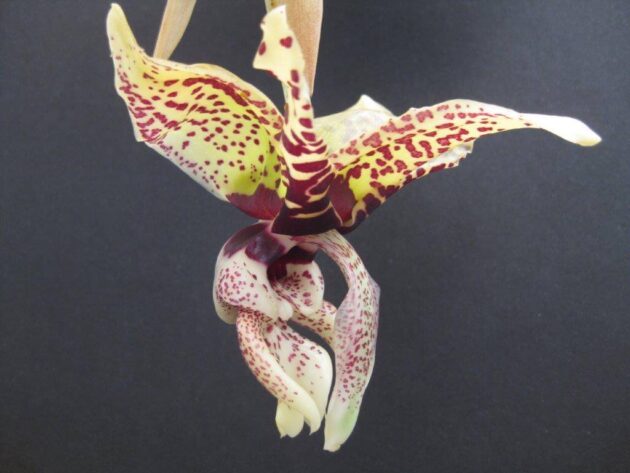 Stanhopea tigrina is an easy to grow Mexican species carrying large boldly coloured flowers with a strong fragrance. Plant of Stanhopea tigrina in 100mm pot for sale $30.