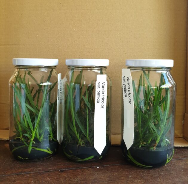 Flasks of Vanda tricolor var. pallida for sale for $50 each. Approx 20 very healthy seedlings with very good roots. Ready to deflask now.